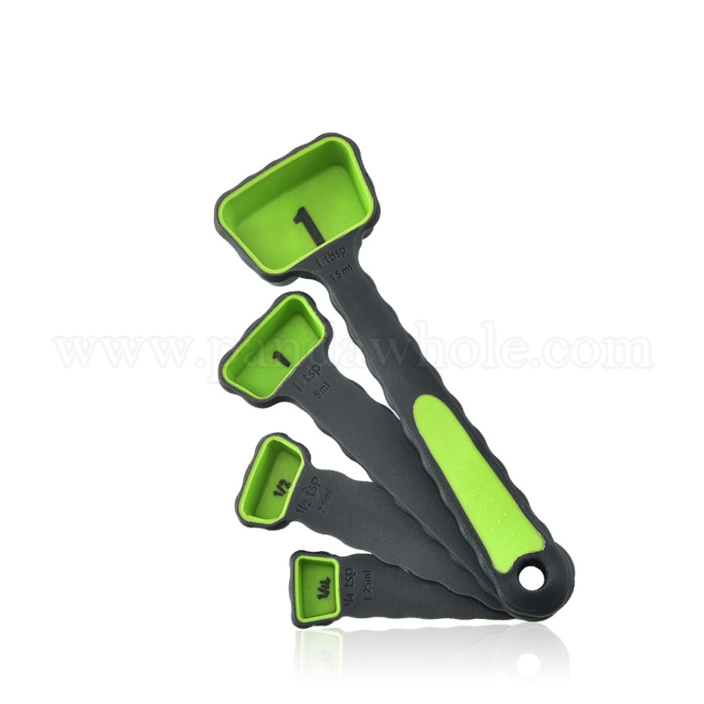 • Зелено-Желтый Набор силиконовых мерных ложек, инструмент для выпечки, зеленый желтый, 75~145x22~43 мм, 4 шт / комплект