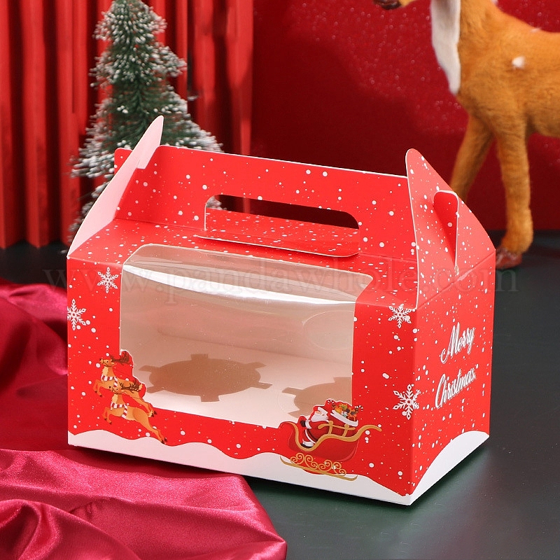 Прямоугольные бумажные хлебопекарные коробки с прозрачным окном и ручкой, подарочная коробка на рождественскую тематику, для мини торта, кекс, упаковка печенья (02D8A8)