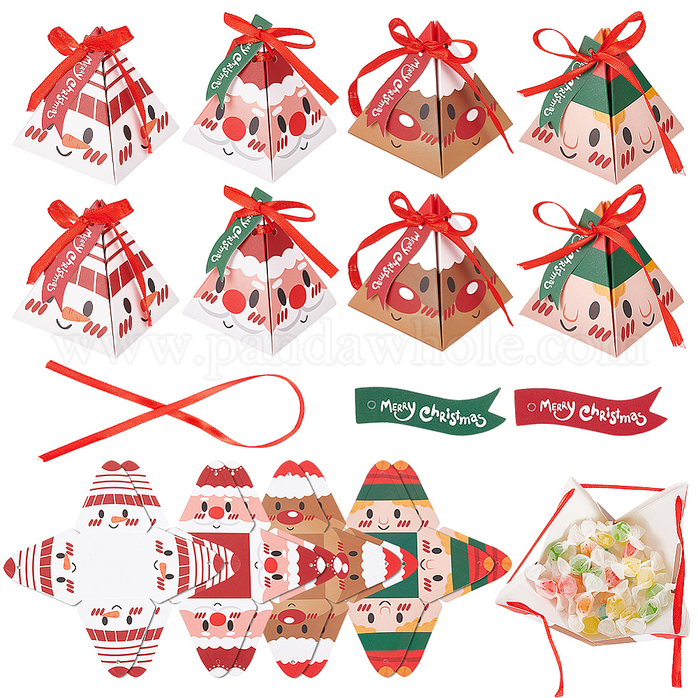 32 шт 4 стиль рождественской тематики пирамидальные бумажные коробки для выпечки, с бантом ленты