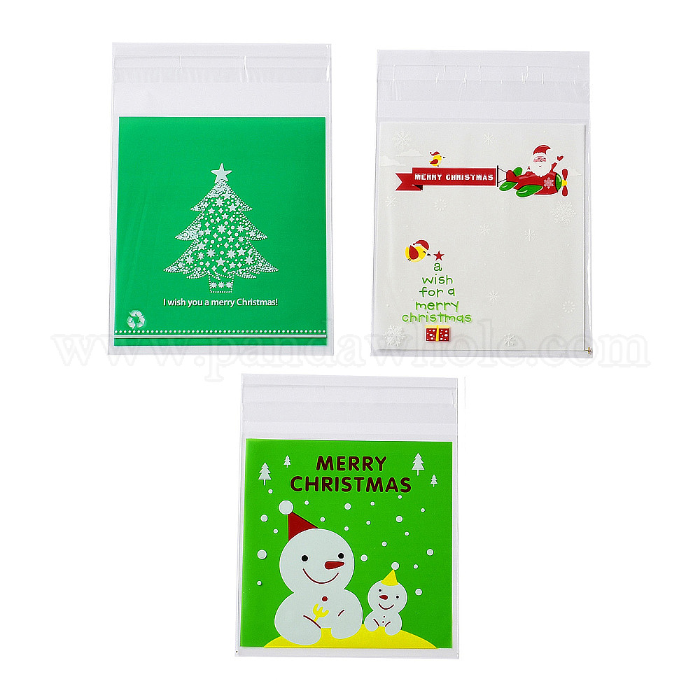 Пластиковый пакет для выпечки с рождественской тематикой, с самоклеющейся, для шоколада, конфеты, печенье, квадратный