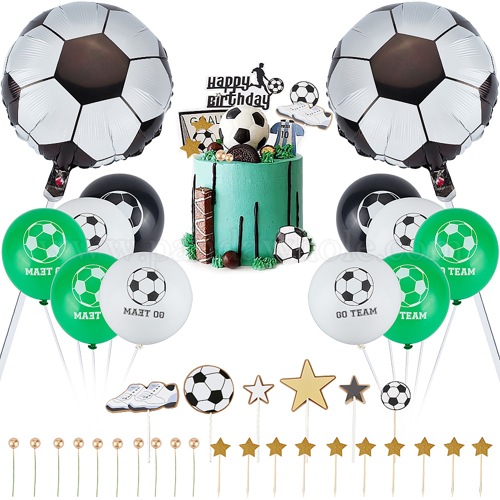 Футбольные бумажные украшения для торта, пластиковый футбол, баллоны из алюминиевой пленки, резиновые надувные шары, пенопласт с проволокой рождественская ягода (02QEMS)