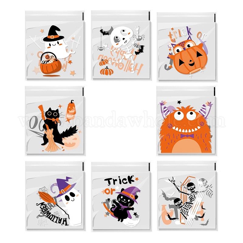 Пластиковые пакеты для печенья на тему Хэллоуина, квадратные самозапечатывающиеся пакеты для печенья