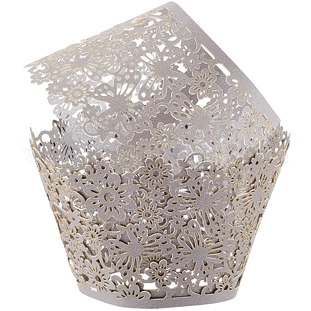 • Серебро 50 шт. бумажные формочки для выпечки, выдолбить цветочный вкладыш для кексов, аксессуары для выпечки, серебряные, 80x55 мм