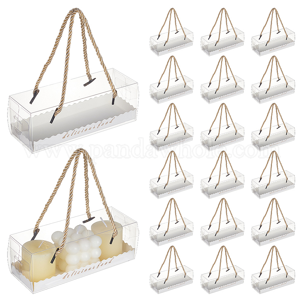 • Белый Прямоугольные складные коробки для хранения из бумаги и пластика с ручкой из полиэстеровой веревки., белые, 185x65x65 мм