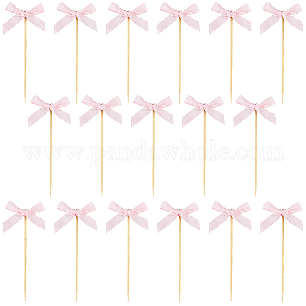 100шт. тканевые украшения для торта в виде бантиков с деревянной палочкой, карточки-вкладыши для торта, для украшения торта