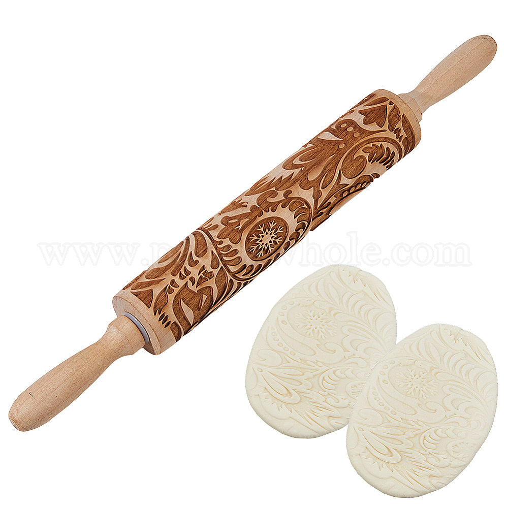 • Цвет Древесины Буковая скалка, валик для выпечки рельефного печенья, кухонный инструмент, снежинка шаблон, деревесиные, 406x45 мм