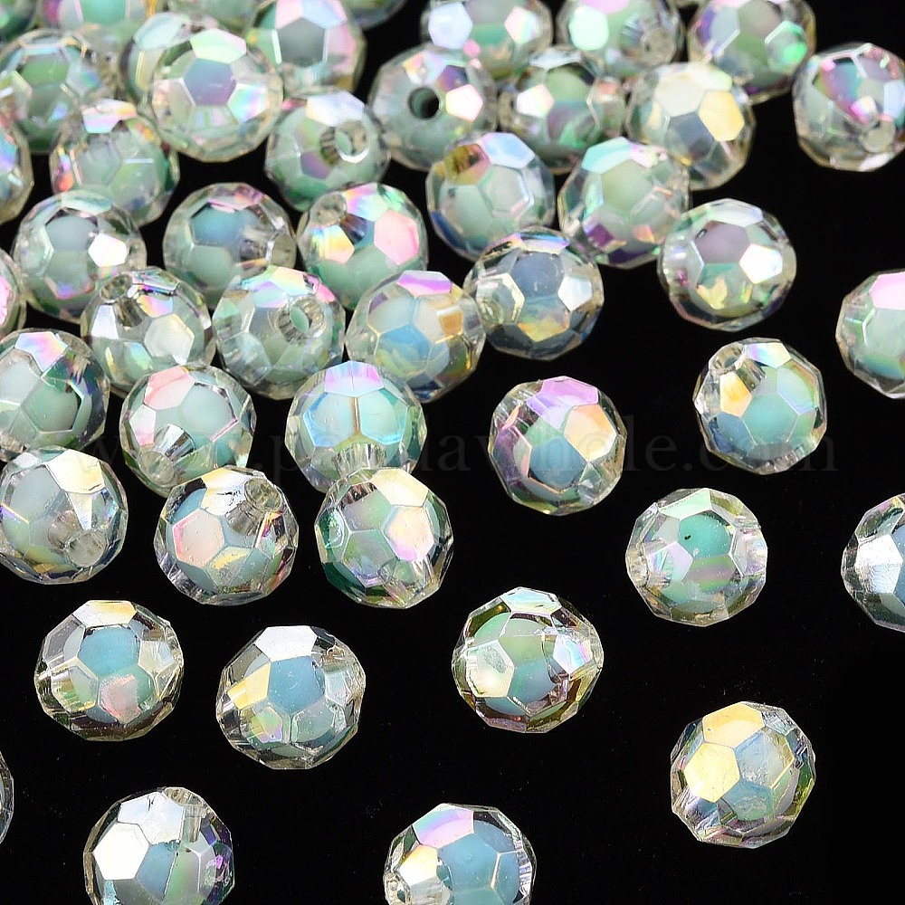 Прозрачные акриловые бусины, бусина в бусине, AB цвет, граненые, круглые
