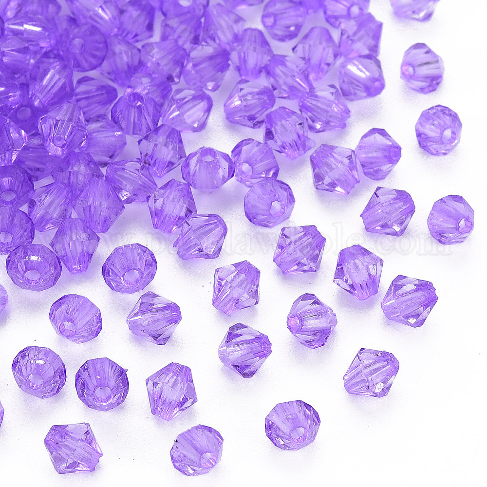 • Темно-Фиолетовый Прозрачные акриловые бусины, граненые, двухконусные, темно-фиолетовый, 5x4.5 мм, отверстие : 1.2 мм, Около 12160 шт / 500 г