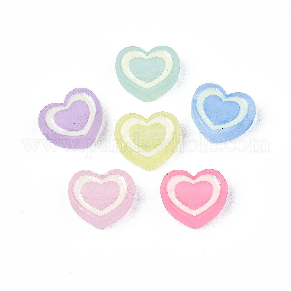 Прозрачные акриловые бусины, с эмалью, матовые, сердце