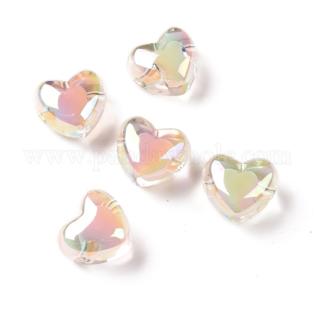 Прозрачные акриловые бусины, бусина в бусине, с покрытием AB цвета, сердце