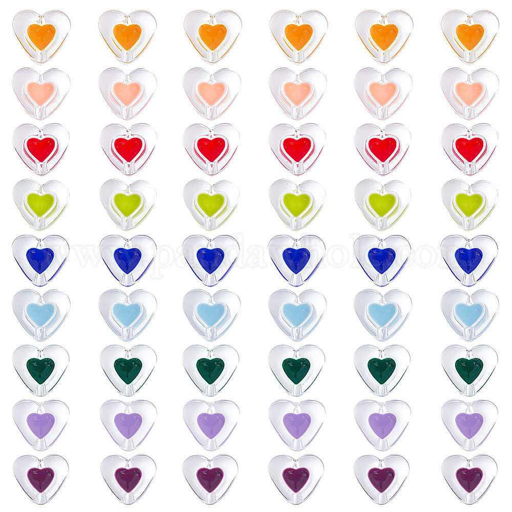 54 шт 9 стиль прозрачные акриловые бусины, с эмалью, сердце
