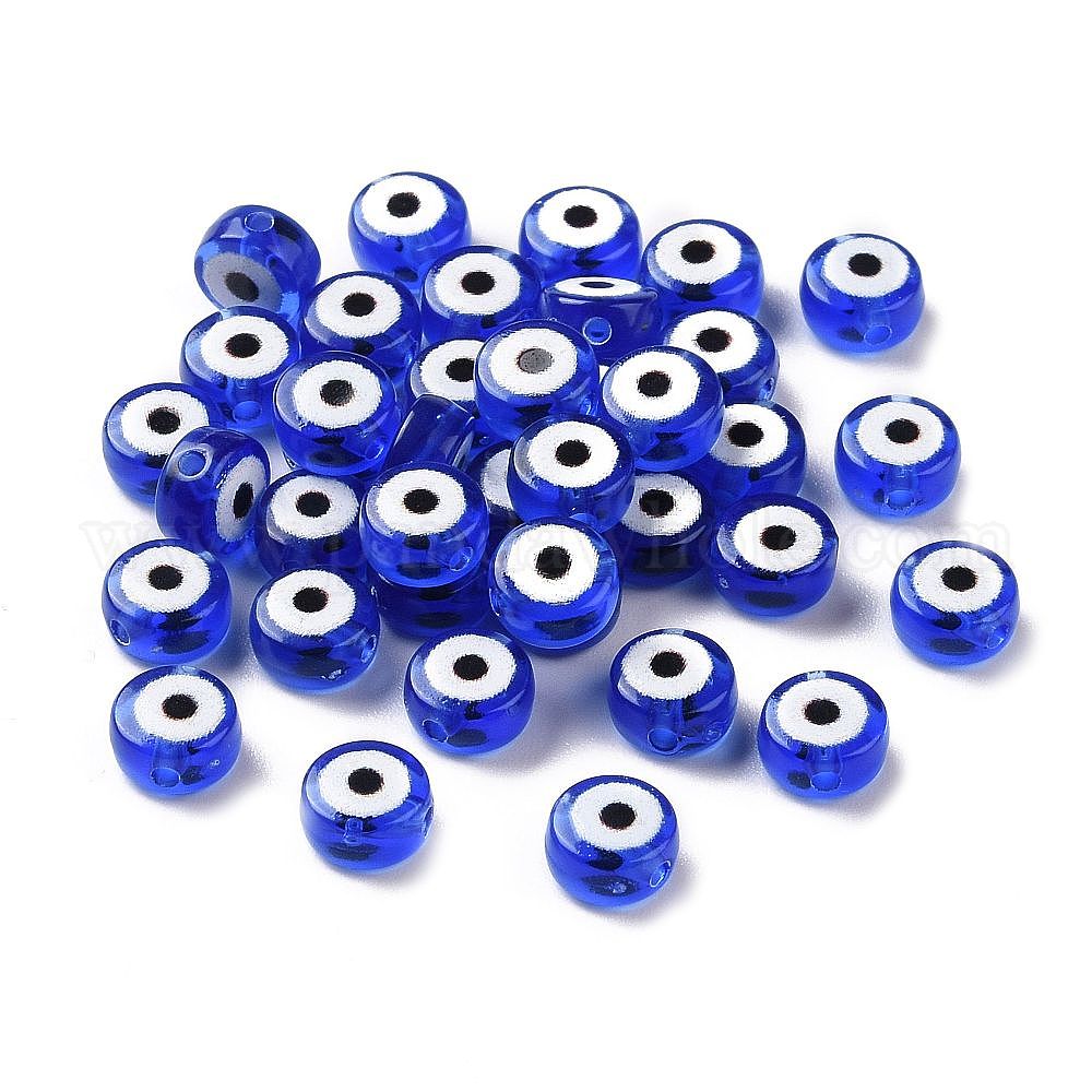 Прозрачные акриловые бусины, плоский круглый с рисунком сглаза