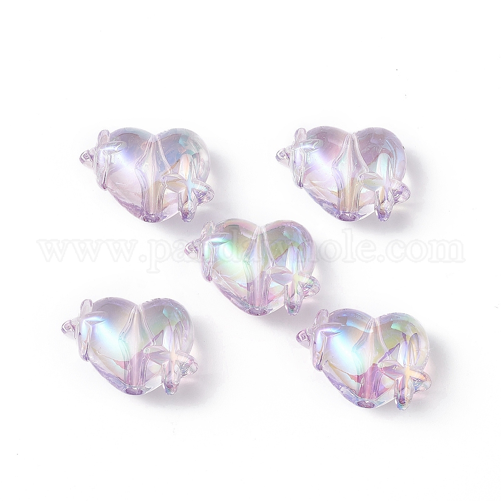 Прозрачные акриловые бусины, с покрытием AB цвета, Сердце звездочкой