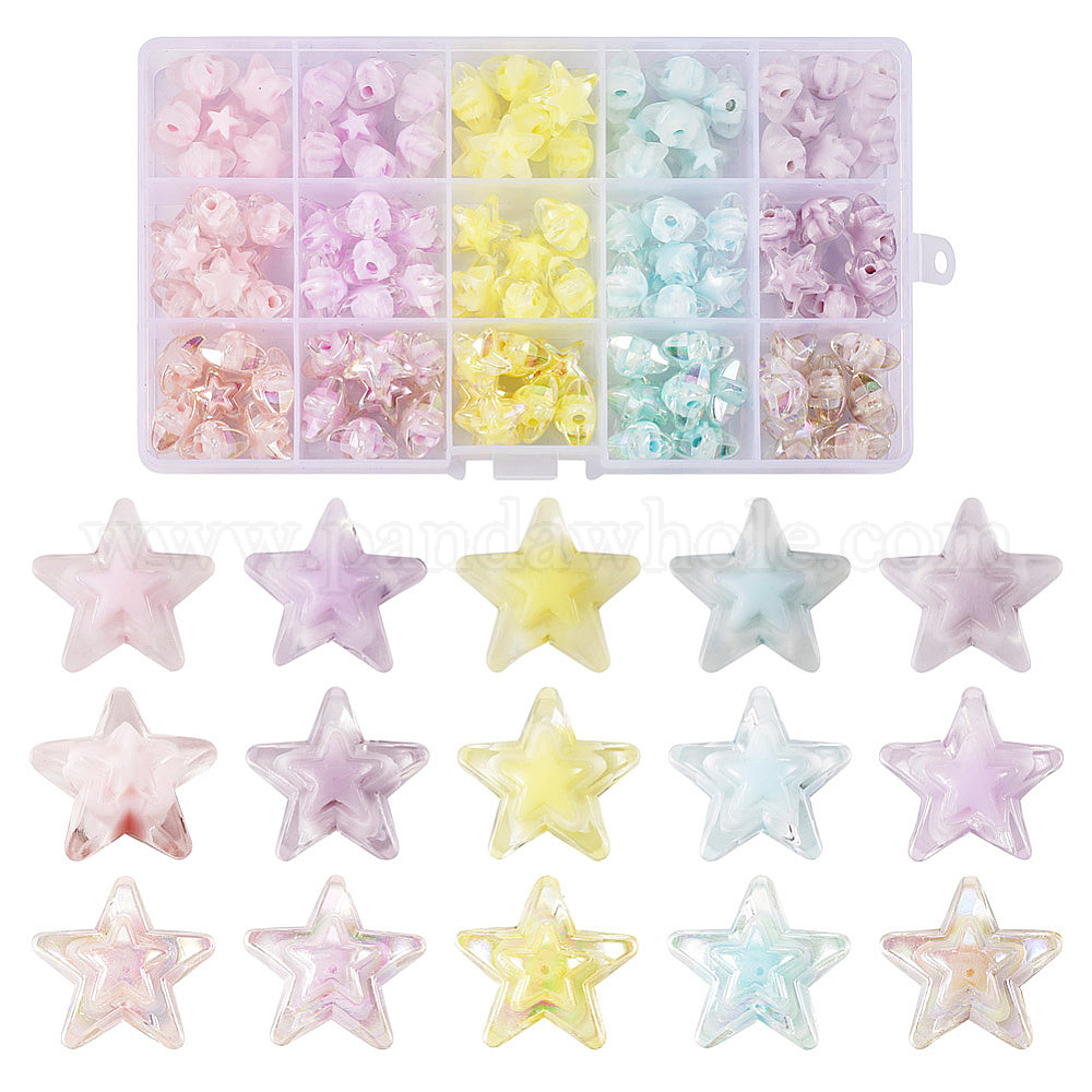 120 шт 15 стиль прозрачные акриловые бусины, матовые, AB цвет, бусина в бусине, звезда