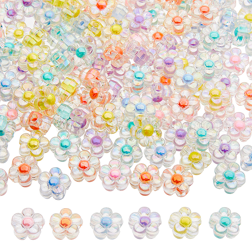 180 шт 6 цвета прозрачные акриловые бусины, цветок