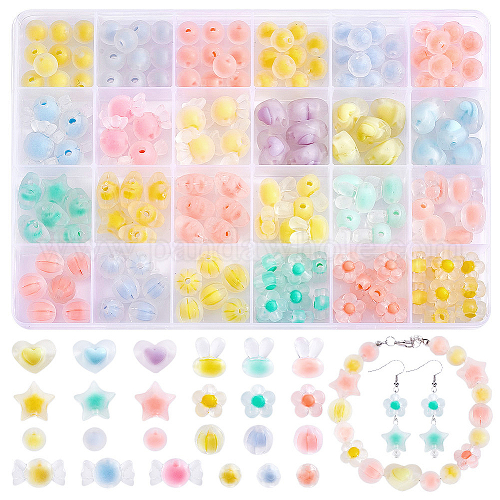 • (52) Непрозрачная лаванда Прозрачные акриловые бусины, бусина в бусине, матовые, граненые, разнообразные, разноцветные, 9.5~14x9.5~21.5x6~11.5 мм, отверстие : 2~2.5 мм