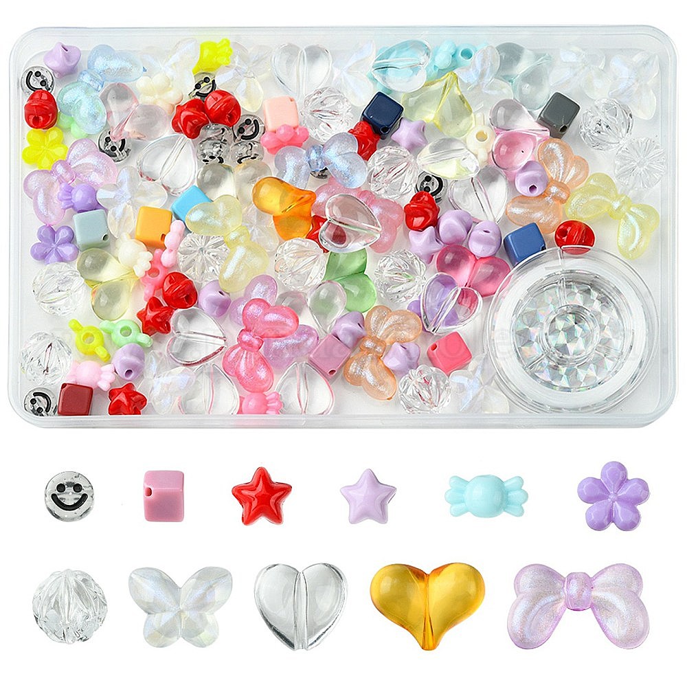 106 шт. 11 стили прозрачные акриловые бусины разных цветов с прочной эластичной эластичной нитью с бисером