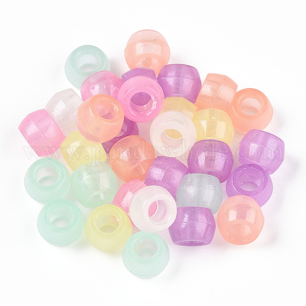• (52) Непрозрачная лаванда Прозрачные светящиеся акриловые бусины, бусины вороны, Пони бусины, светится в темноте, баррель, разноцветные, 8x6 мм, отверстие : 3.8 мм