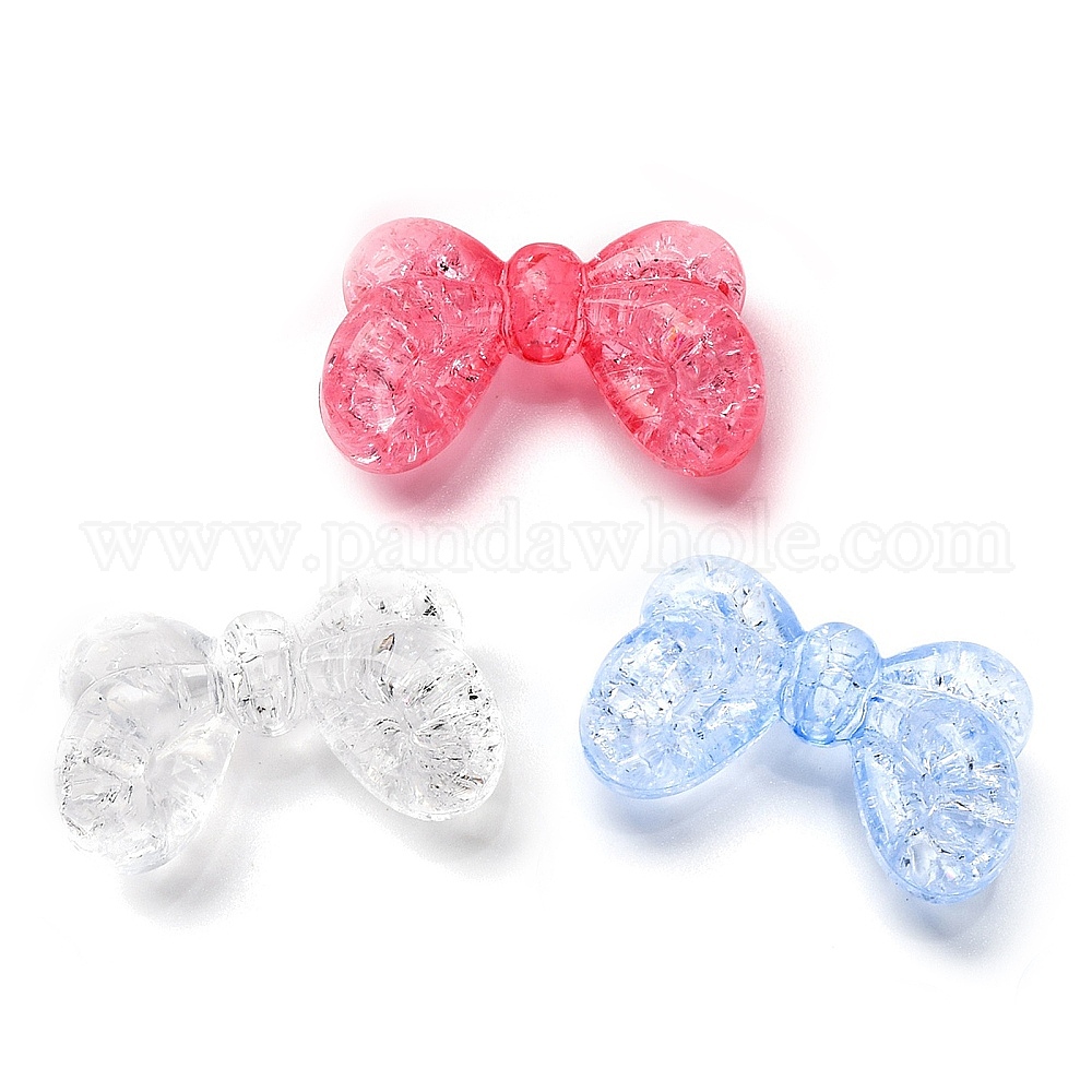 • Pink Покрытие прозрачные кракле акриловые бусины, бантом, розовые, 16.5x27x7.5 мм, отверстие : 2.2 мм