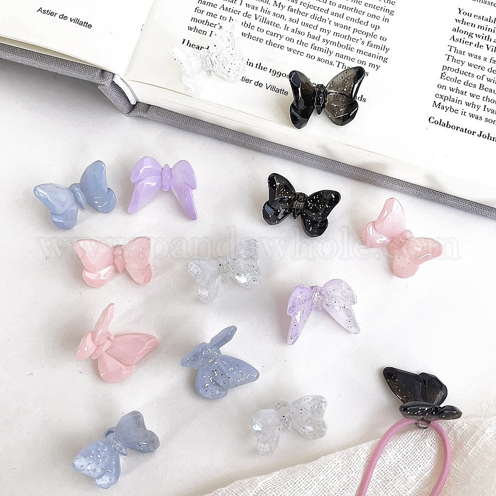 Прозрачные акриловые бусины, бабочка, с блеском порошок