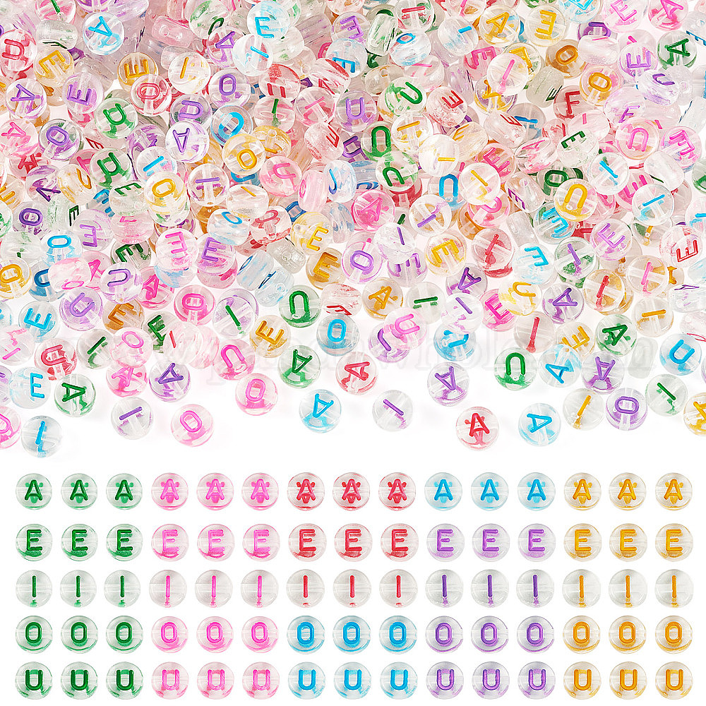 500 шт. 5 стили прозрачные акриловые бусины, горизонтальное отверстие, плоская круглая буква со смешанным цветом