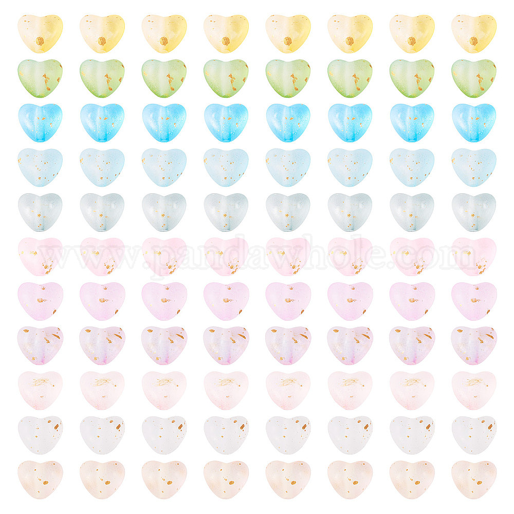 110 шт. 11 цветные матовые прозрачные акриловые бусины, сердце, с золотой фольгой и блестящими бусинами