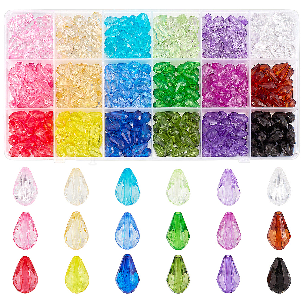 396 шт 18 стили акриловые бусины, слеза, граненые