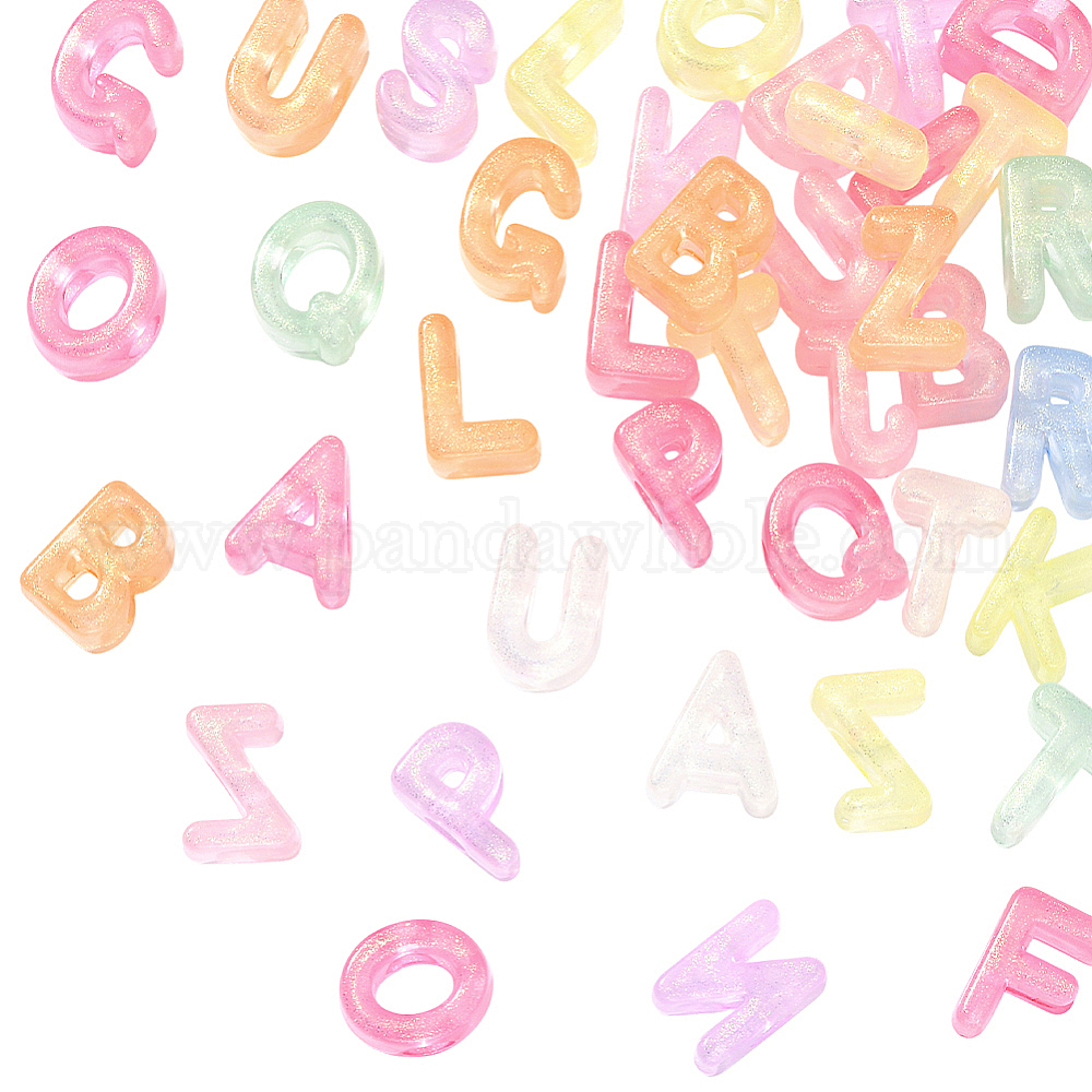 50шт. светящиеся прозрачные акриловые бусины, Письмо ~ Z, с блеском порошок, светится в темноте