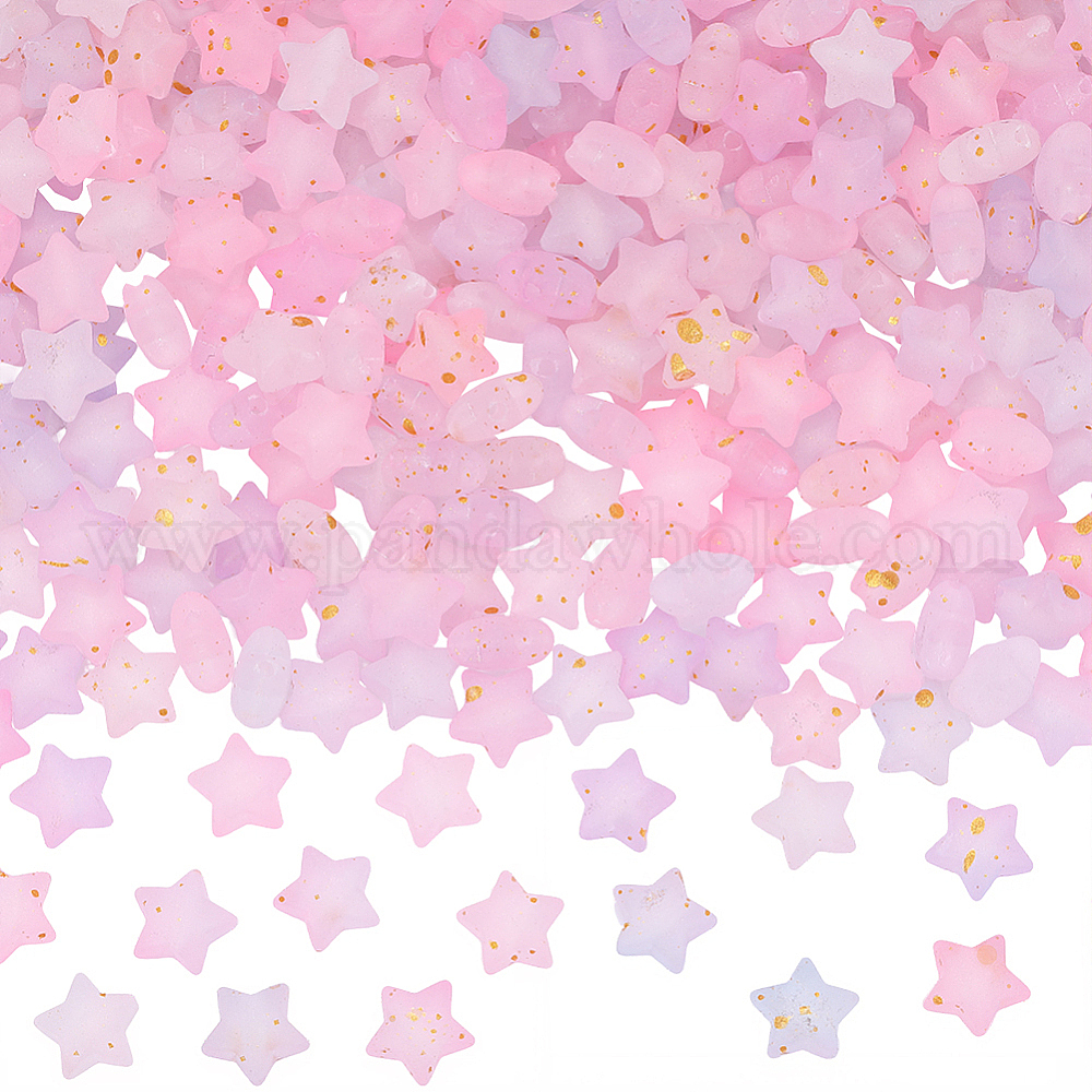 • Бледно-Розовый 300шт. матовые акриловые бусины, золотой фольгой, звезда, градиент цвета, розовый жемчуг, 9x10x5 мм, отверстие : 1.6 мм