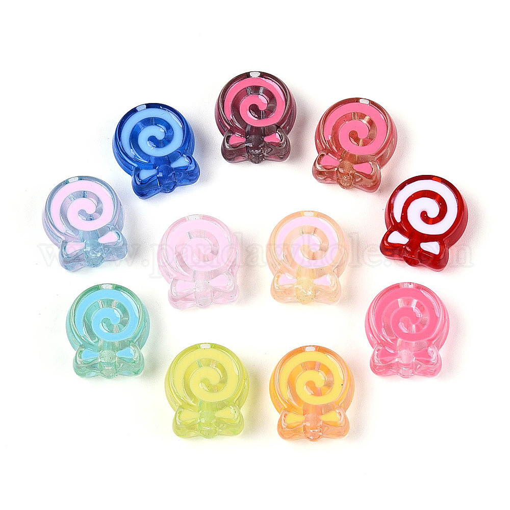 Прозрачные акриловые бусины, леденец, с эмалью