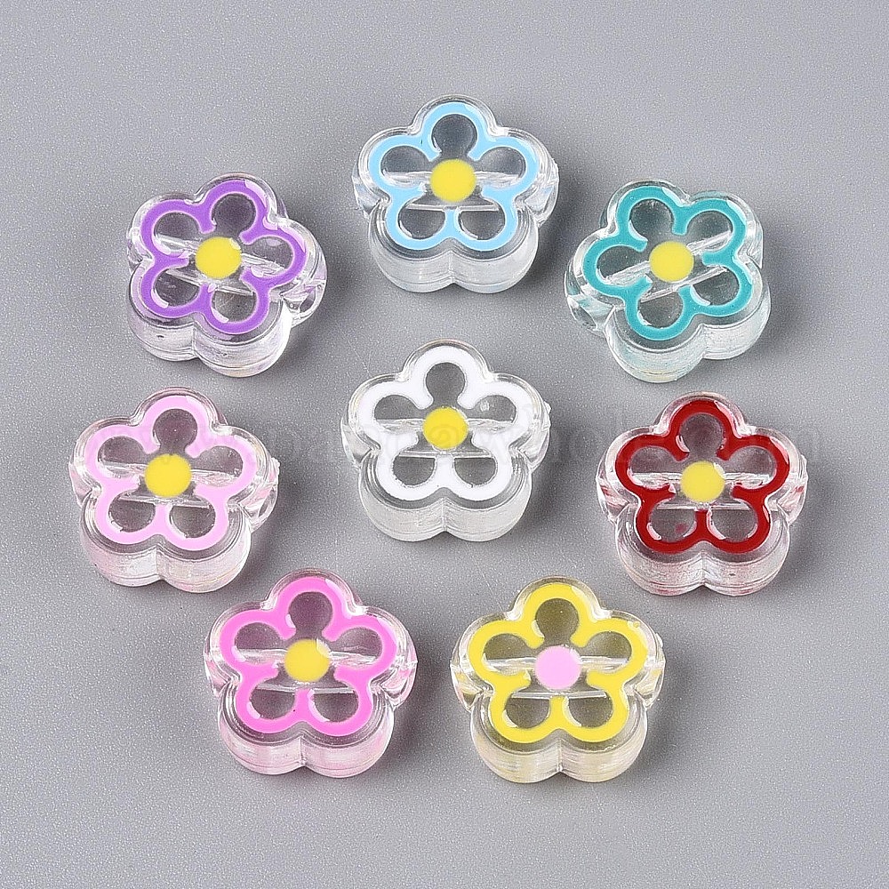 Прозрачные акриловые бусины, цветка сливы, с эмалью