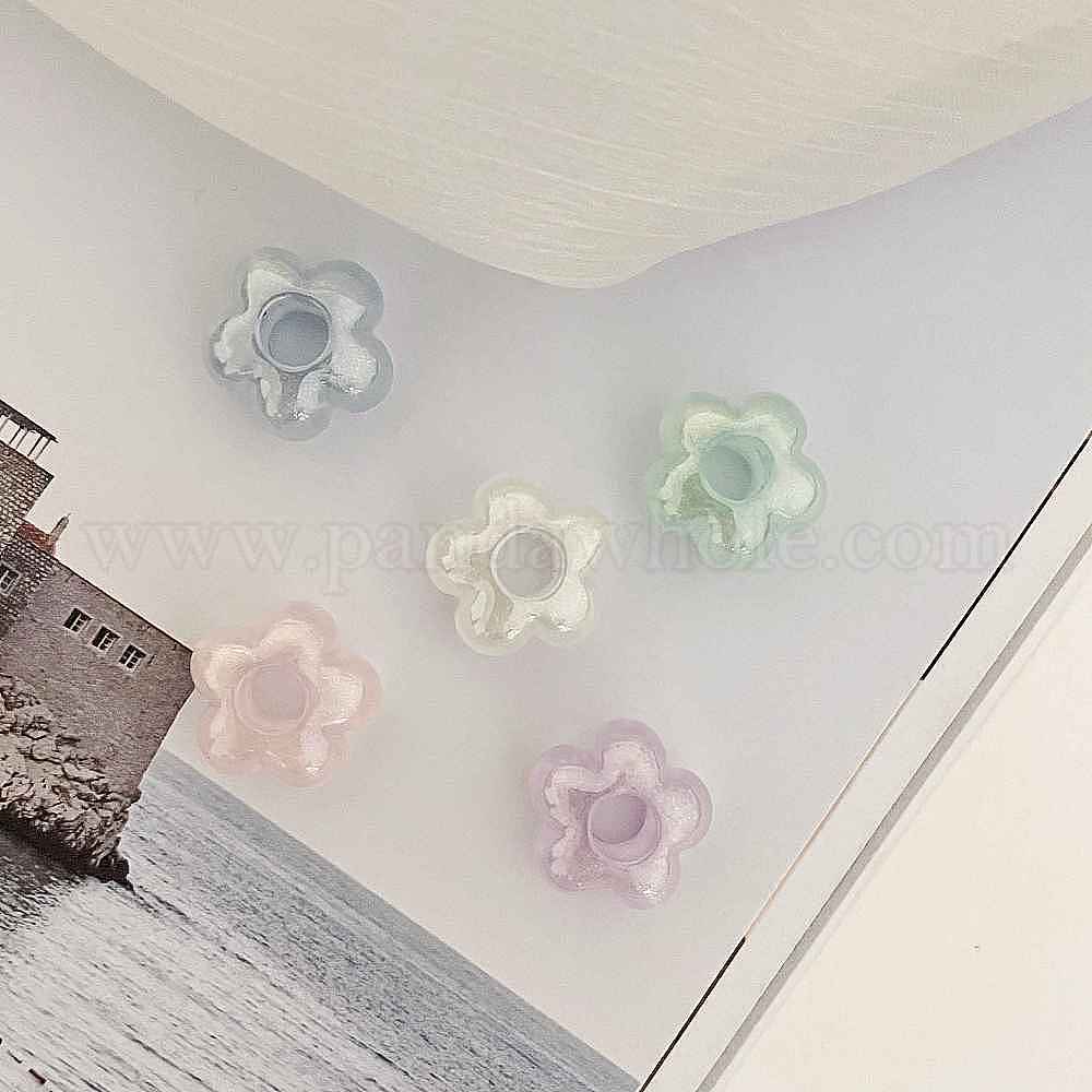 Светящиеся прозрачные акриловые бусины, бусины с большим отверстием, цветок, светится в темноте