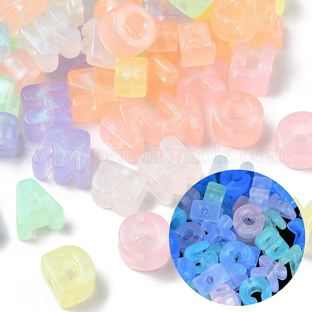 Светящиеся прозрачные акриловые бусины, буквы, с блеском порошок, светится в темноте