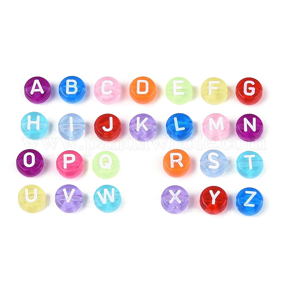 Прозрачные акриловые бусины, плоские круглые с буквы