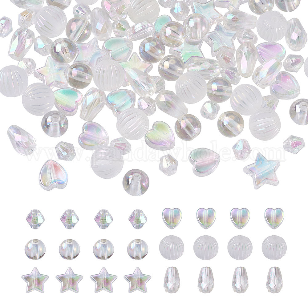Прозрачные акриловые бусины, с покрытием AB цвета, разнообразные