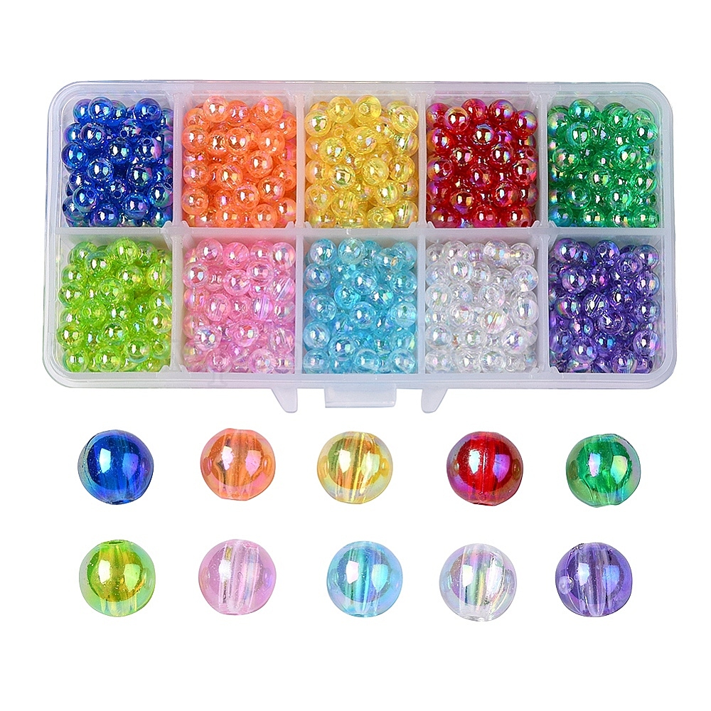 прозрачные акриловые бусины: 6 мм в диаметре, отверстие : 1.5 мм, 10 цветов, 80 шт / цвет, 800 шт / уп;