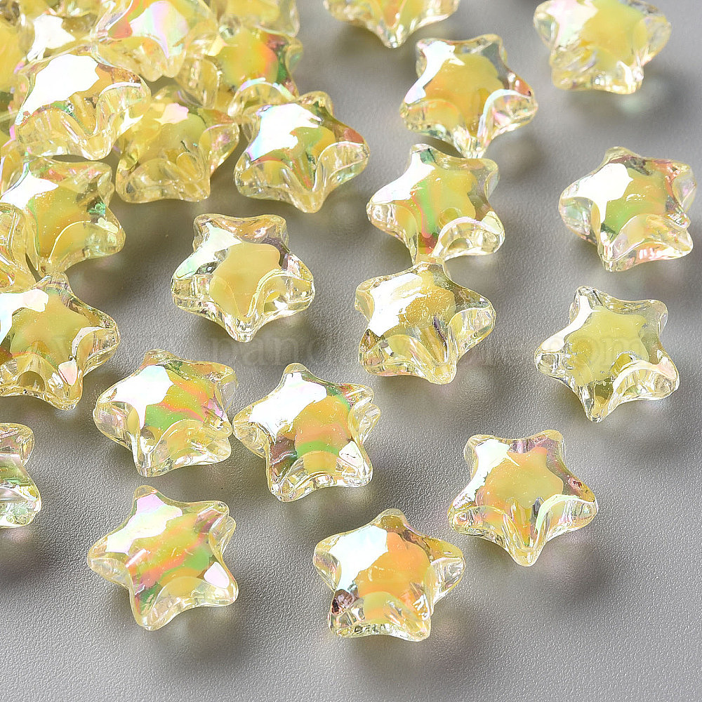 Прозрачные акриловые бусины, бусина в бусине, AB цвет, граненые, звезда