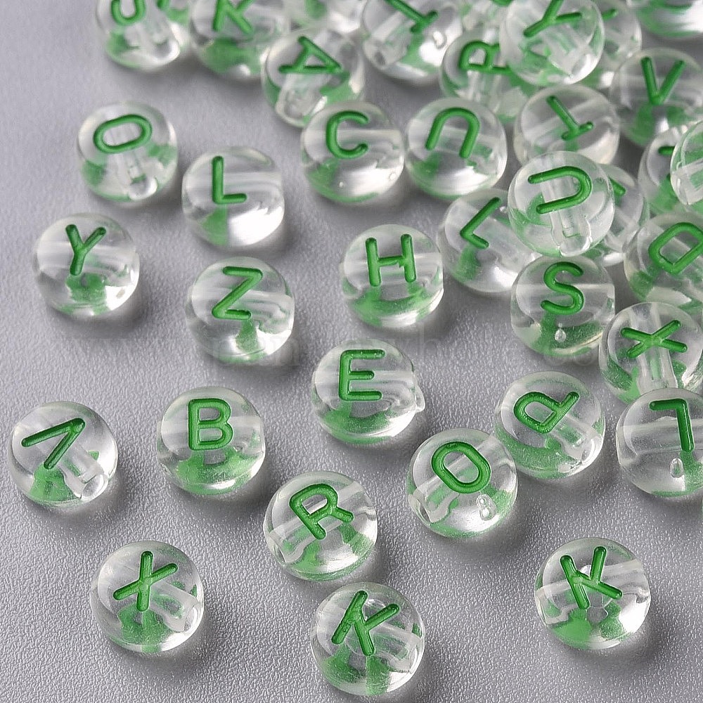 Прозрачные прозрачные акриловые бусины, горизонтальное отверстие, плоский круглый со случайным письмом