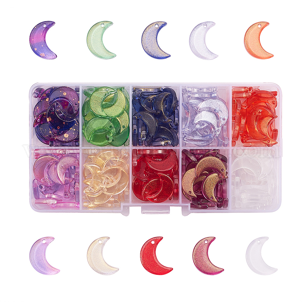прозрачные стеклянные бусины в форме луны: 11.5ширина мм, 16.5 мм длиной, толщиной 3 мм , отверстие : 1.2 мм, 10 цвета;