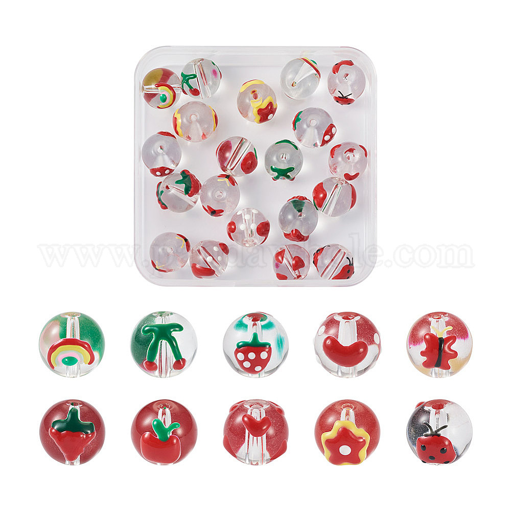 20шт 10 стиль прозрачные стеклянные эмалевые бусины, бусины ручной работы, круглые, божья коровка, сердце, радуга, цветок, бабочка, клубника и яблоко