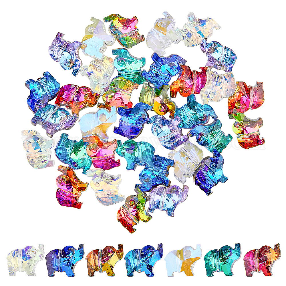 35 шт 7 цвета прозрачные стеклянные бусины, с покрытием на задной стороне, слон