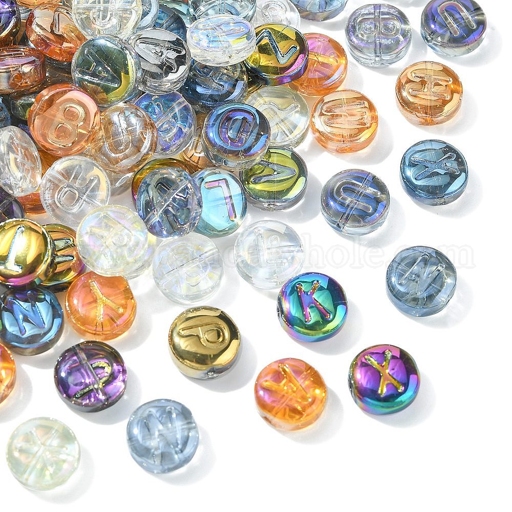 100шт стеклянные бусины, плоские круглые с начальной буквой