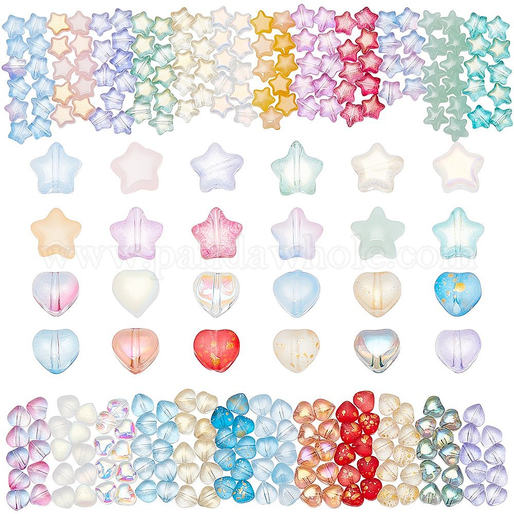 288шт. 24 стили прозрачные и имитация нефрита и окрашенные распылением стеклянные бусины, звезда и сердца
