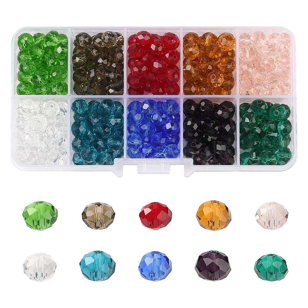 300шт 10 цветные стеклянные бусины нити, граненые, рондель