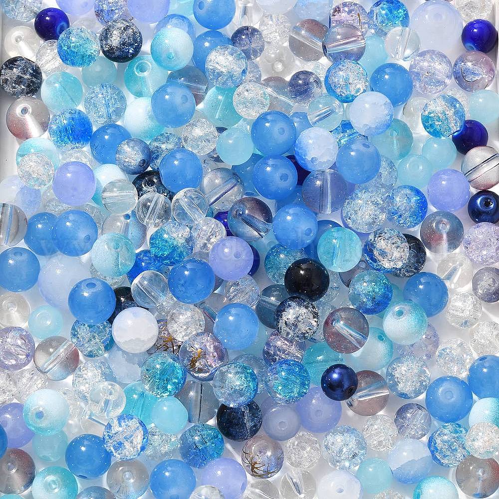 Разноцветные стеклянные бусины, круглые