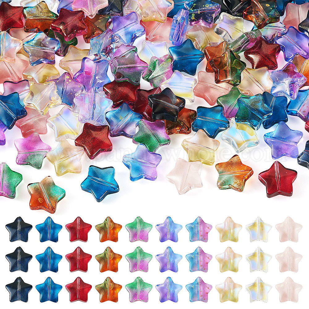 100 шт. 10 Цвета: двухцветные прозрачные стеклянные бусины, окрашенные распылением, и цветные градиентные бусины ручной работы в технике лэмпворк, звезда (032HC3)
