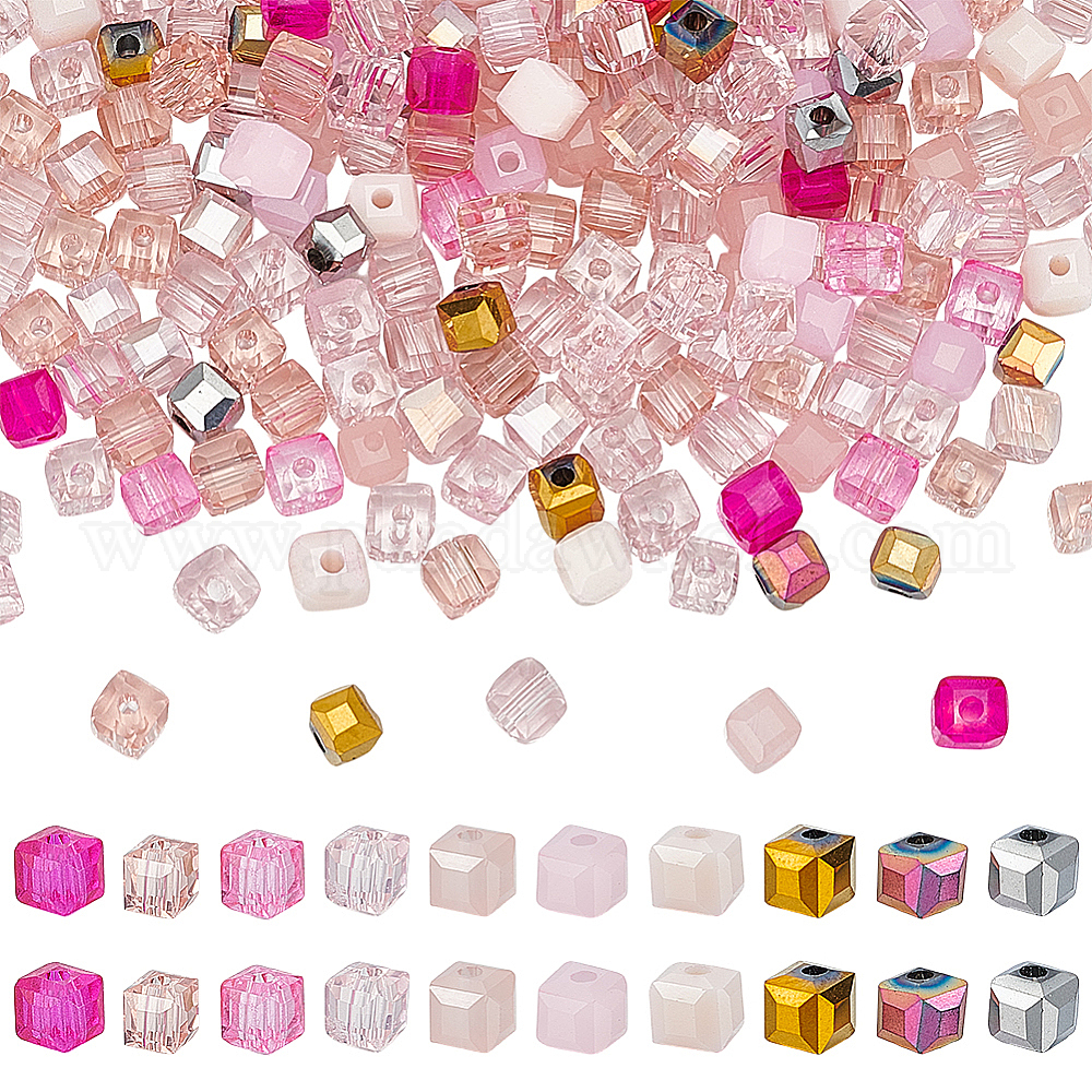 • Pink 2сумки с имитацией искусственных хрустальных бусин, граненый куб, смешанный стиль, розовые, 4x4x4 мм, отверстие : 1.2 мм