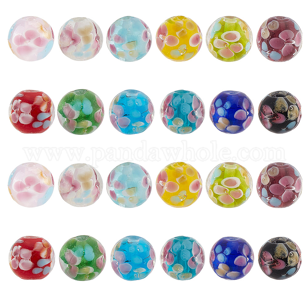 24шт. 12 стили наборы бусин ручной работы из прозрачного стекла и лэмпворка, круглые с цветочным узором