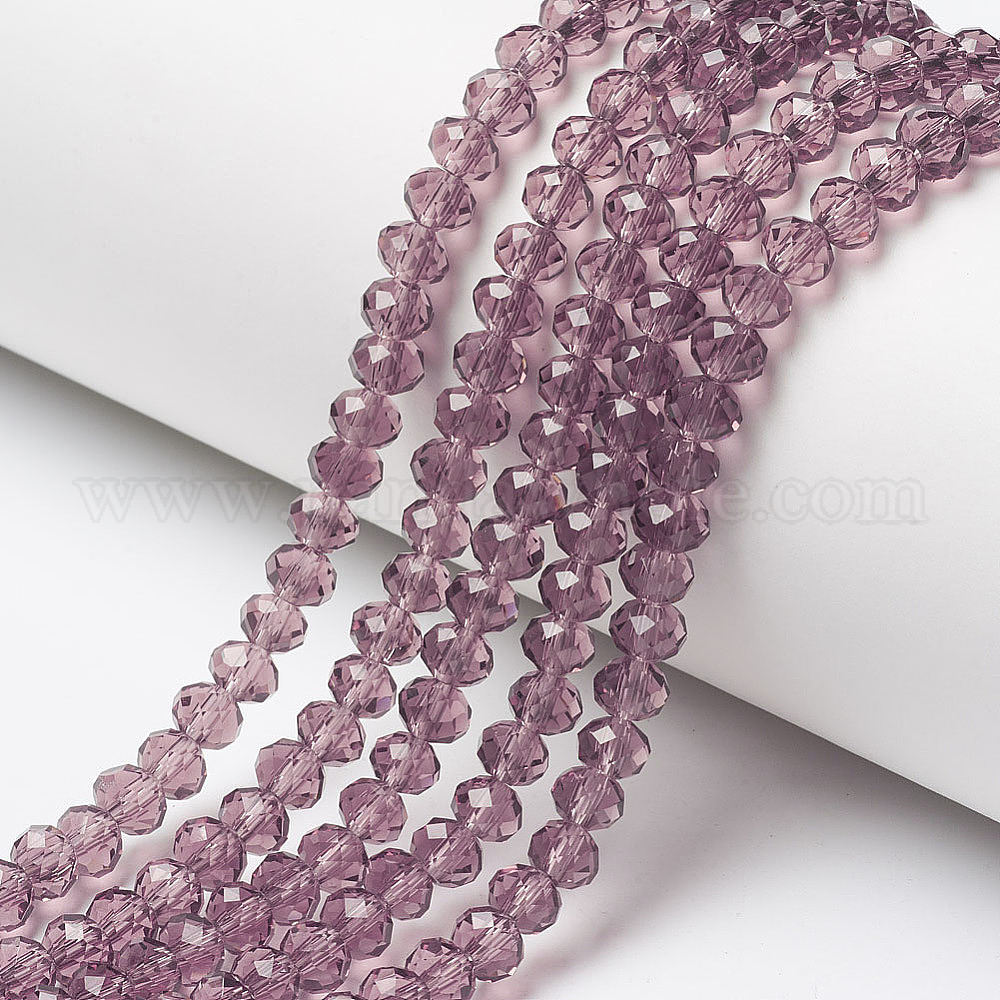• Бледно-фиолетовый Красный Стеклянные бусины, граненые, рондель, бледно-фиолетовый красный, 6x5 мм, отверстие : 1 мм, около 85~88 шт / нитка, 16.1~16.5 дюйм (41~42 см)