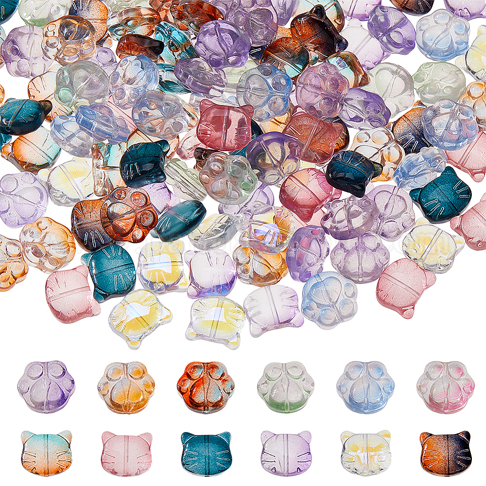 120шт 2 стиль стеклянные бусины, для изготовления ювелирных изделий, отпечаток кошачьей лапы